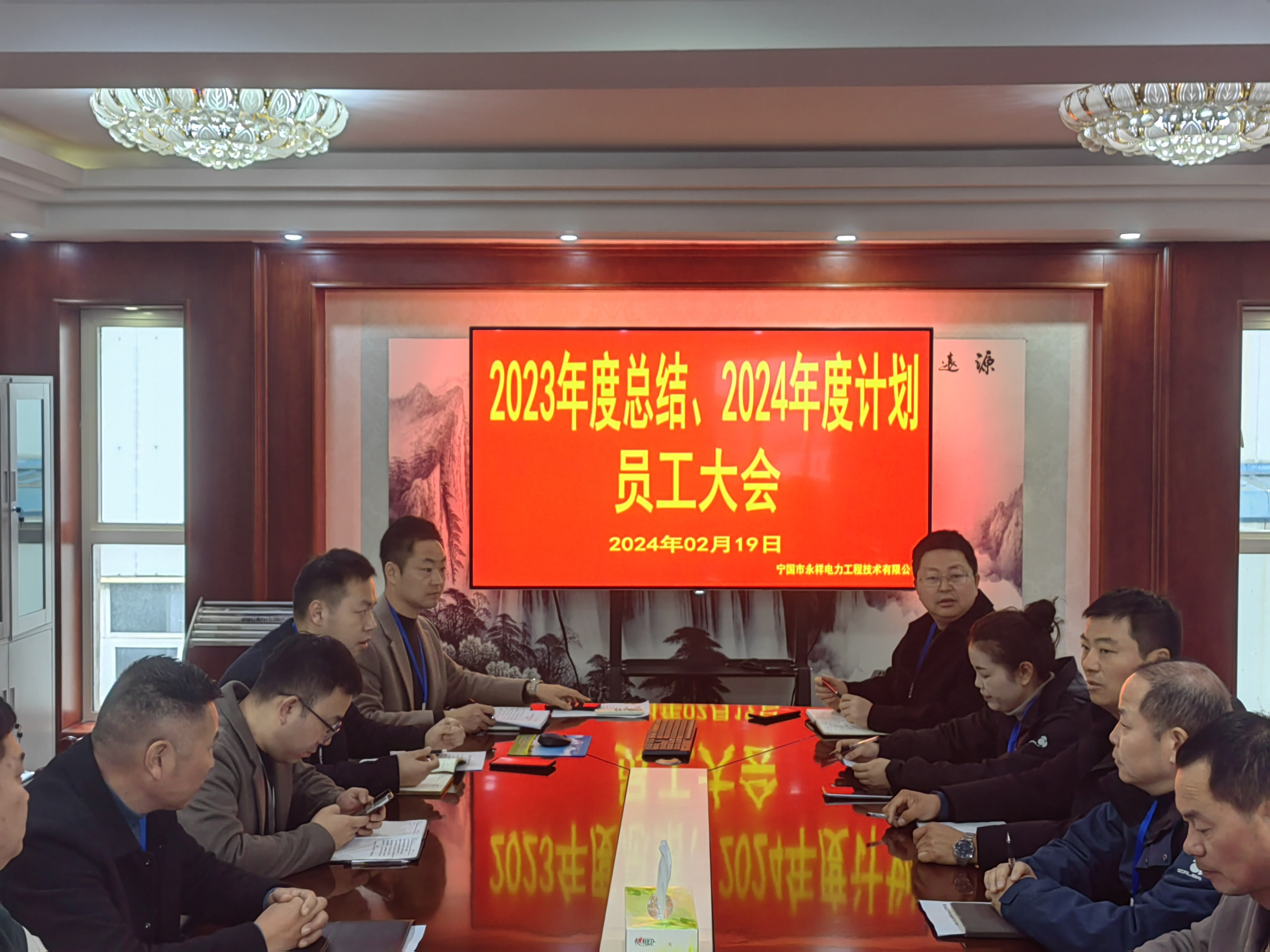 為總結(jié)回顧永祥電力公司2023年度經(jīng)營工作整體情況,安排部署2024年重點(diǎn)工作任務(wù),2月19日上午,永祥電力公司召開2023年度總結(jié)暨2024年計劃會議??偨?jīng)理艾關(guān)祥主持會議,各部室負(fù)責(zé)人、班長及以上人員參加會議。